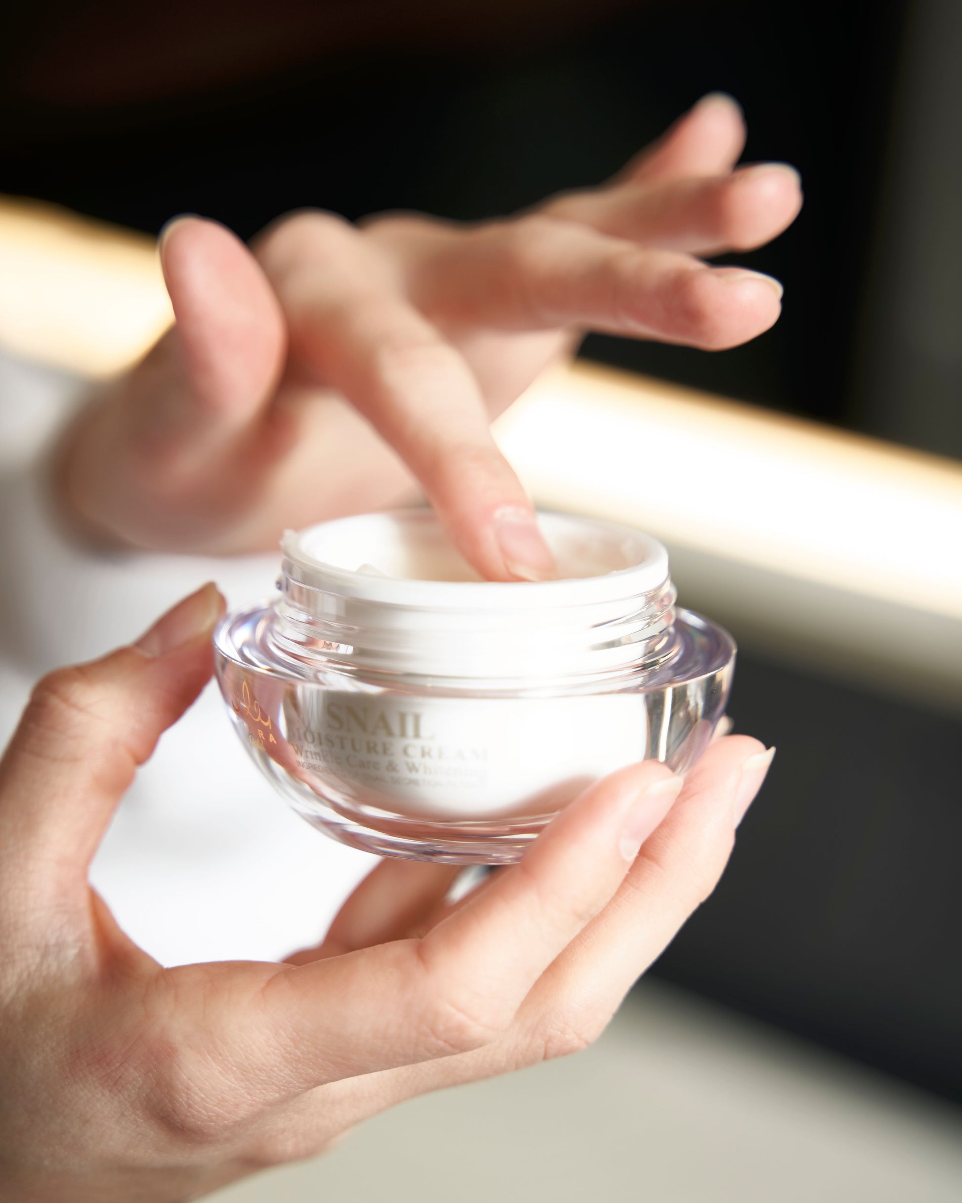 The snail cream contains the filtrate of mucilage of snails for use on tired and unstable skin. It provides nutrients to help make your skin smoother and softer. Other ingredients include silkworm, ginseng, and royal jelly giving your skin a golden glow. Adenosine is an ingredient that reduces wrinkles and is recognized by the Ministry of Food and Drug Administration for reducing the appearance of wrinkles.